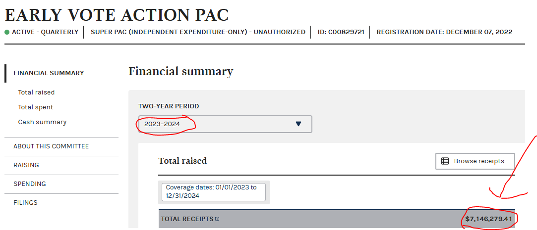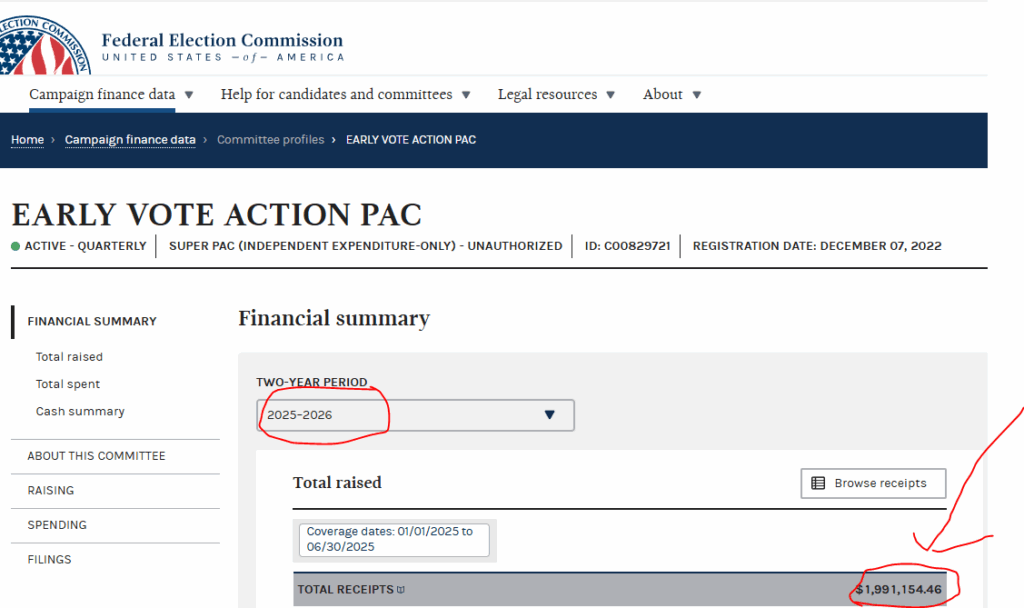 Scott Presler’s Early Vote Action PAC has raised a stunning $9.1 Million in 2 years between 2023-2024 and 2024-2025